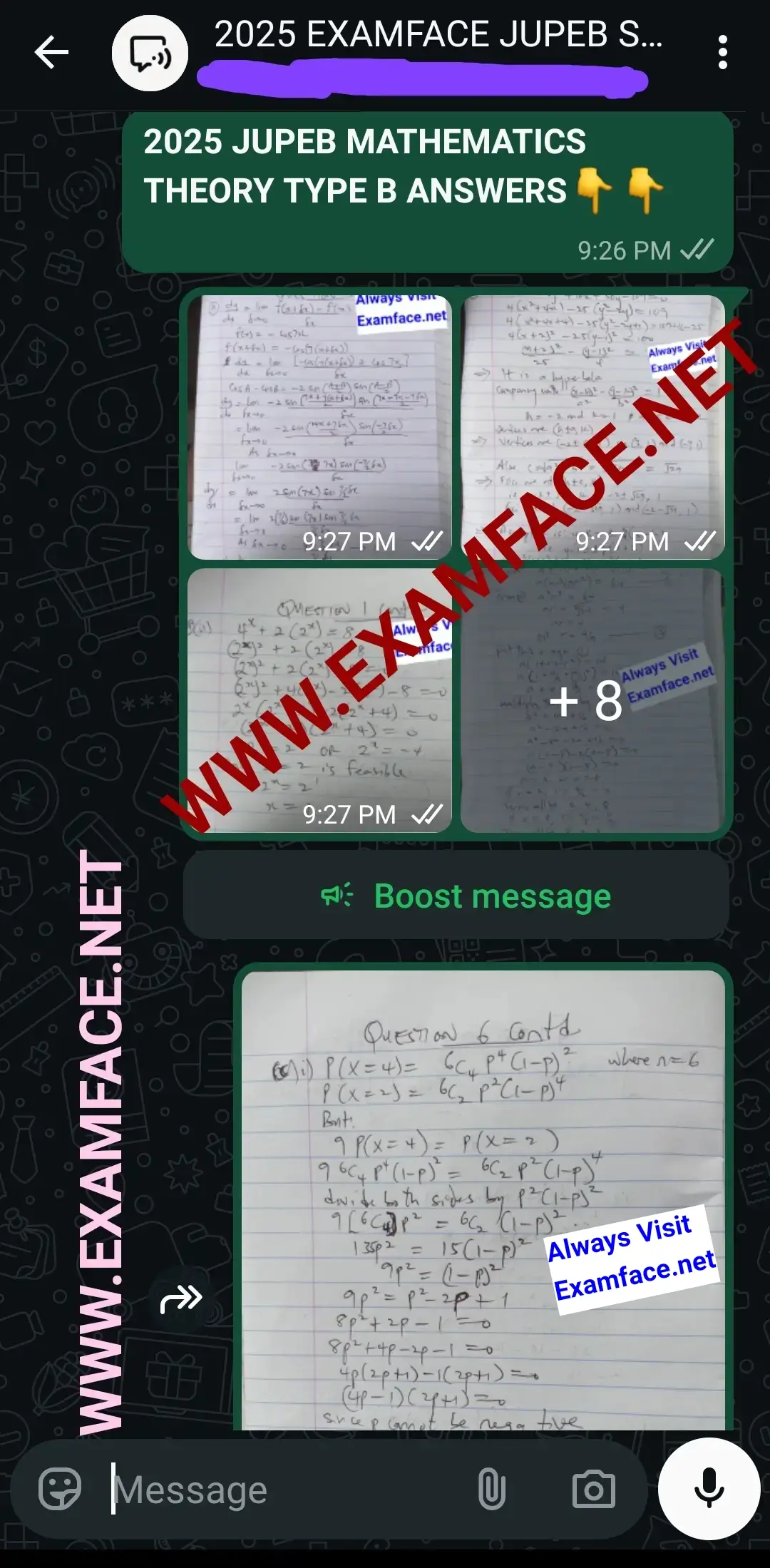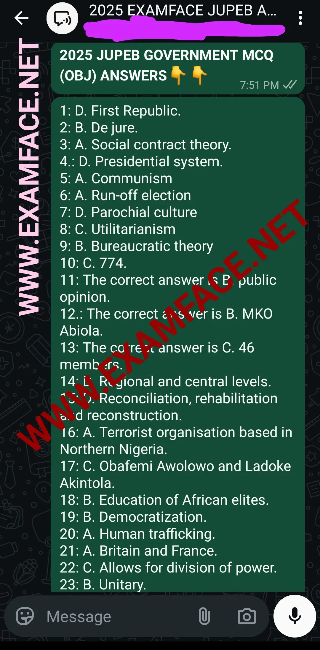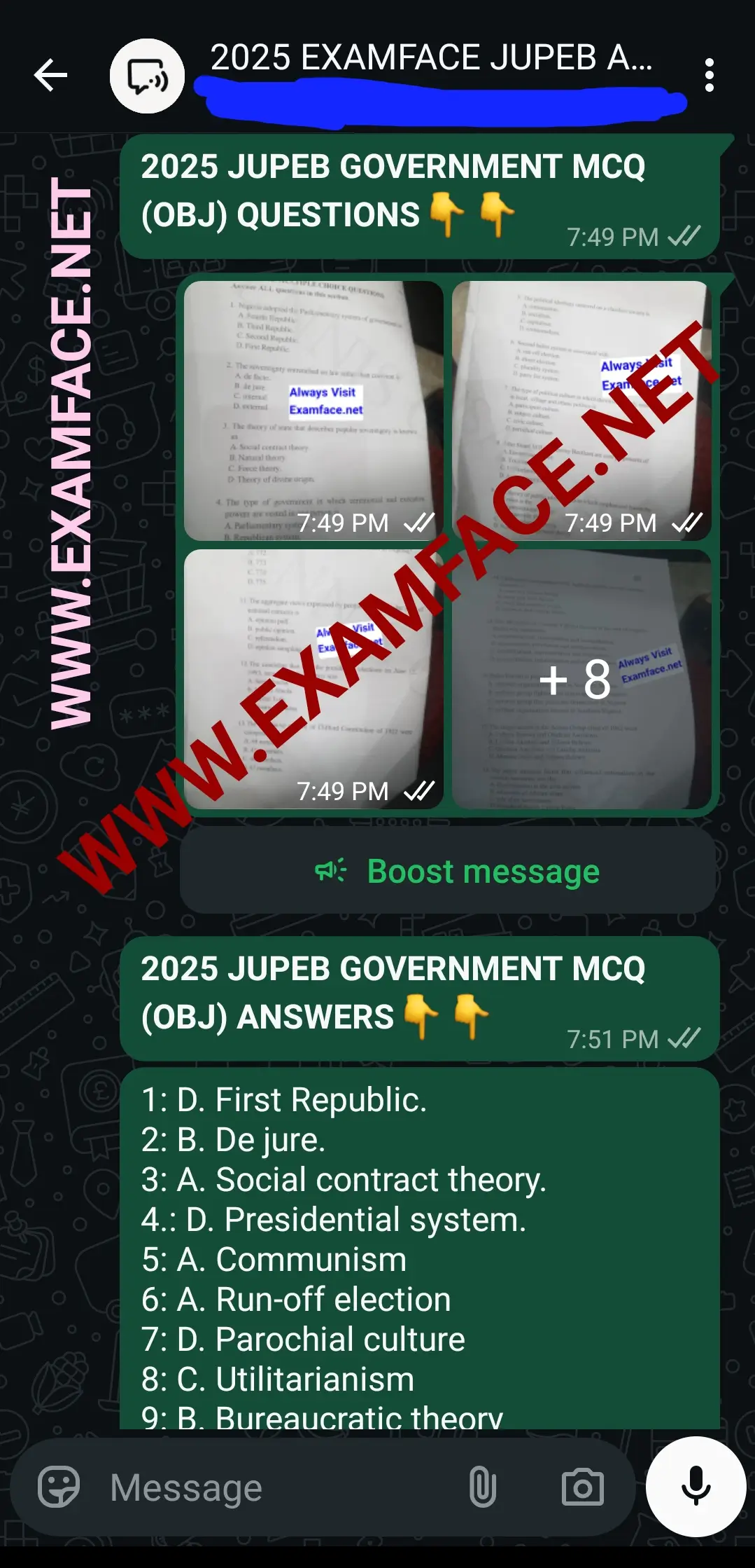 Examface.Net has always been reliable, and by midnight before the scheduled exam time, all questions and answers will be shared and made available on both our WhatsApp group and online Answer page.